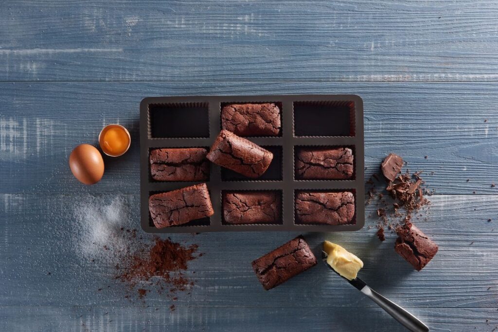 Formy silikonowe, zwłaszcza te z kwadratowymi wgłębieniami, są wręcz stworzone do pieczenia brownie bites. Dlaczego?