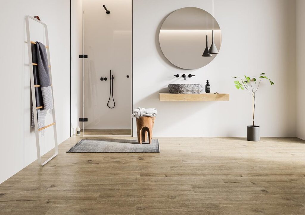 • Łazienka: Idealne miejsce dla gresu szkliwionego. Niska nasiąkliwość chroni przed wilgocią, a łatwość czyszczenia i odporność na plamy z kosmetyków to ogromny atut. Warto jednak rozważyć płytki z wyższą klasą antypoślizgowości (np. R10) ze względu na ryzyko poślizgnięcia się na mokrej podłodze.