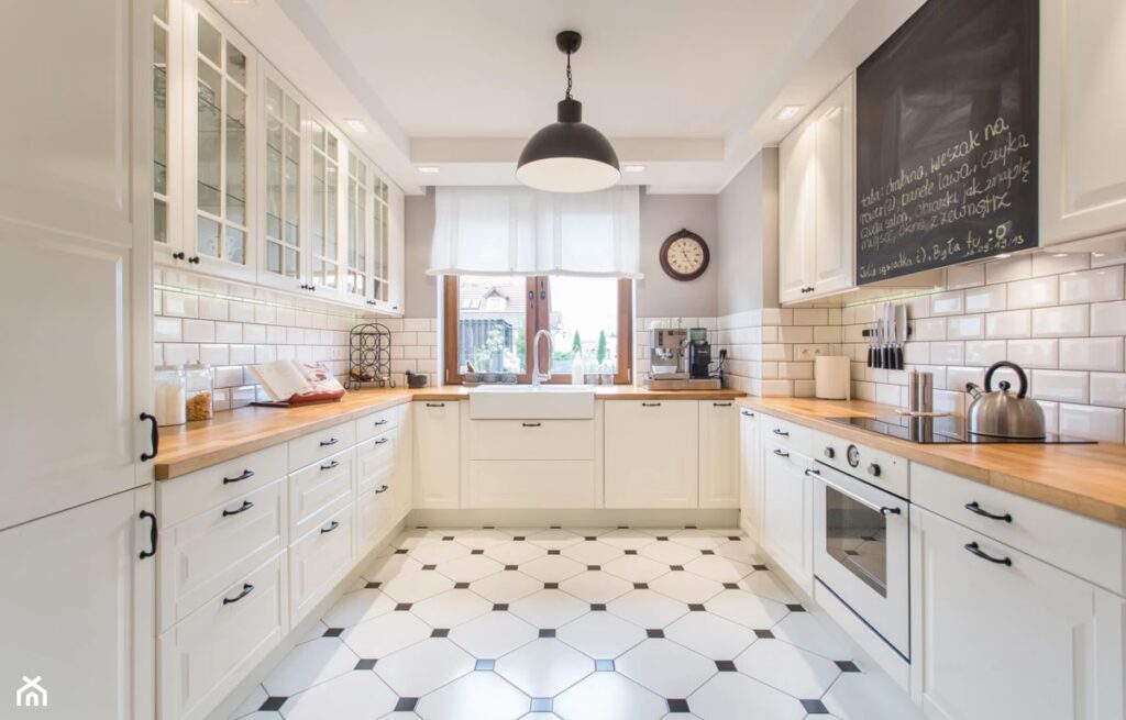 Płytki idealne do białej kuchni z drewnianym blatem: Harmonia barw